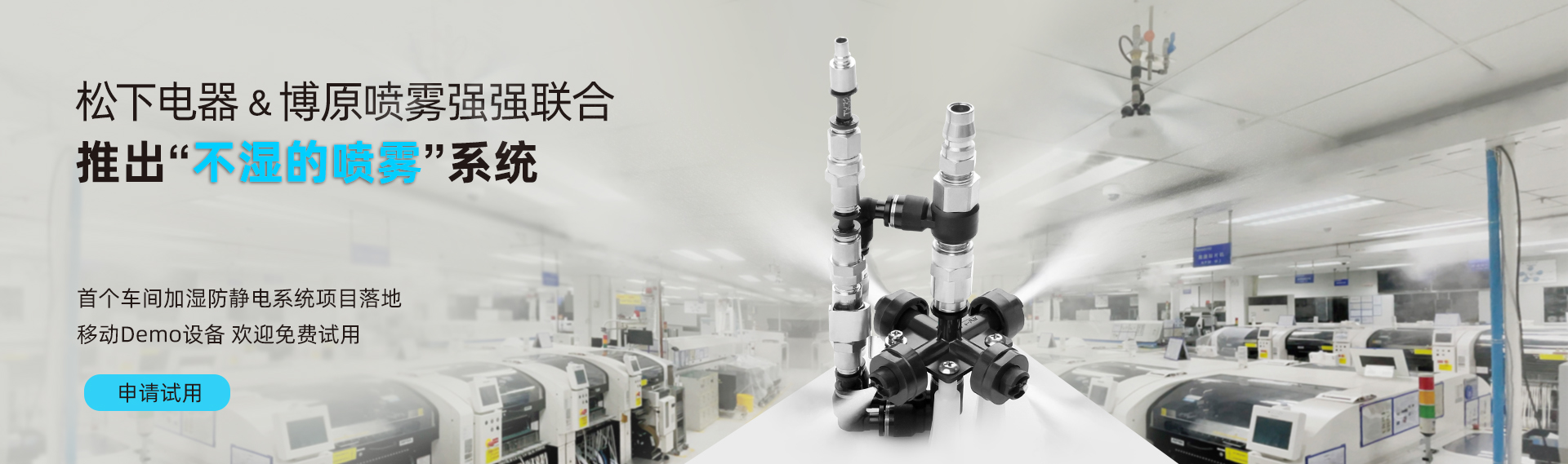 雙方于2023年簽訂MOU戰略合作協議,目前水霧項目穩定有序的開展,兩個SMT車間智能加濕項目完美落地,噴霧控制系統已實現國產化,后續雙方會持續優化產品及項目流程,為用戶提供更優質的服務。   ...